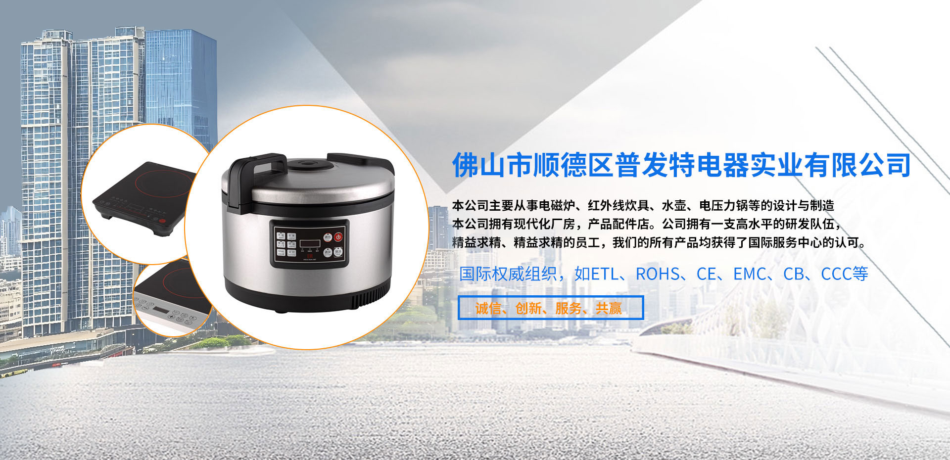佛山市顺德区普发特电器实业有限公司成立于1998年,座落在佛山市顺德区,素有“家用电器之乡”之称。 本公司主要从事电磁炉、红外线炊具、水壶、电压力锅等的设计与制造。本公司拥有现代化厂房,产品配件店。 公司拥有一支高水平的研发队伍,精益求精、精益求精的员工,我们的所有产品均获得了国际服务中心的认可。 国际权威组织,如ETL、ROHS、CE、EMC、CB、CCC等。我们的营销网络遍及全国各地,我们的产品也销往南亚、中东、非洲、南非等等。展望未来,我们将继续坚持企业精神,为世界创造一流的产品和服务。